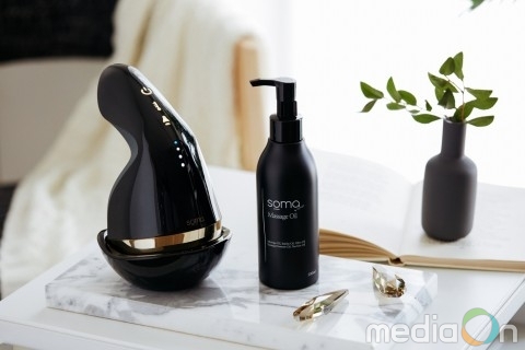 쉬엔비가 2019 키메스에서 선보이는 ‘소마’는 바이폴라 고주파 에너지, 석션, LED 레드라이트의 시너지로 손쉬운 바디케어를 돕는 복합 체형관리 기기다. 필요한 부위에 올려놓고 마사지하는 것만으로 바디 슬리밍 효과를 경험할 수 있다.