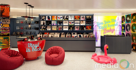 버진의 오랜 음악 역사에 힘입어, ‘스칼렛 레이디’ 선상에 있는 레코드 상점인 보이지 비닐을 통해 오래된 음악이 다시 새로워 질 것이다. 보이지 비닐은 여행객들이 선상에서 모든 시대 모든 장르의 음악을 경험할 수 있는 장소가 될 것이다. 보이지 비닐에는 여행객들이 각자 좋아하는 현대 및 클래식 앨범을 즐길 수 있게 하는 개별 청취 전용 공간이 마련된다. 또 자기만의 독특한 것을 원하는 여행자들은 한정판의 선별된 앨범과 클래식 특별판을 구입할 수 있다. 여행객들은 음악 잡지, 헤드폰, 전축 등도 살 수 있다.