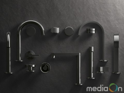 라인과 각도의 조화가 돋보이는 컴포턴트 콜렉션의 스파우트는 형태에 따라 ‘리본’, ‘로우’, ‘튜브' 세 가지 종류로 구성돼 있다. 특히 로우와 튜브 스파우트는 매끄러운 물줄기로 물방울이 많이 튀지 않는 것이 장점이다. 여기에 각기 다른 디자인의 핸들 4종은 어떤 스파우트와 결합해도 모던한 분위기를 연출한다. 후크 등의 다양한 액세서리들도 취향대로 조합이 가능하다.