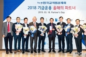 The-K한국교직원공제회가 지난 18일 여의도 본사 The-K타워에서 ‘2018 한국교직원공제회 기금운용 파트너스 데이(이하 파트너스 데이)’를 개최했다. 교직원공제회 ‘파트너스 데이’는 기금운용 성과에 기여한 우수 협력기관에 감사를 표하고 지속적인 협력 관계를 구축하기 위해 올해 처음으로 도입됐다. 지난해 증시 급락 등의 국내외 변수로 주요 연기금들이 마이너스 수익률을 기록한 가운데 교직원공제회는 4.1%의 기금운용수익률을 달성한 바 있다. 이날 행사에는 교직원공제회 차성수 이사장과 김호현 기금운용총괄이사 등이 참석했으며 서유석 미래에셋자산운용 대표 등 ‘2018 올해의 기금운용 파트너’로 선정된 기관의 임원이 참석해 자리를 빛냈다. 교직원공제회의 ‘2018 올해의 기금운용 파트너’로는 금융투자부문 3개사, 기업금융부문 2개사, 대체투자부문 3개사 등 총 8개사가 선정됐다. 교직원공제회는 수익실적 등 정량평가를 바탕으로 우수 파트너사 후보군을 확정하고 관련 직원 업무만족도 조사와 기금운용부문 성과평가협의회 등 총 3단계의 선정 과정을 거쳐 ‘올해의 기금운용 파트너’를 최종 결정했다. 행사에 참석한 차성수 교직원공제회 이사장은 “우리 공