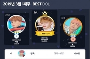 강다니엘이 3만6090표로 베스트아이돌 1위로 선정되며 연속 56주째 굳건히 지켰다. 강다니엘은 소속사와의 분쟁과 그로 인해 여러 가지 루머로 곤욕을 치루고 있지만 변하지 않는 팬심과 그들의 굳건한 믿음으로 3월 첫째 주 투표에 압도적인 1위를 지켜냈다. 그 뒤를 바짝 쫓는 방탄소년단의 지민은 2만2621표로 2위를 차지했다. 독보적인 행보의 강다니엘의 독주를 막기 위한 지민의 화력이 기대를 모으고 있다. 3위는 1만8254표를 얻은 뷔가 차지했으며 뒤를 이어 정국이 1만6053표를 기록하며 간발의 차이로 4위에 올랐다. 뒤를 이어 5위엔 방탄소년단의 진이 랭크 되었으며 박우진과 하성운이 6위 자리를 놓고 엎치락뒤치락 끝에 간발의 차이 138표로 박우진이 6위에 랭크 되면서 박우진은 7위에 그치게 되었다. 배진영은 2월 마지막 주 투표 대비 한 계단 오른 8위가 되었고 그 뒤를 김재환이 이어 9위에 안착했으며 마지막 영광의 TOP 10의 주인은 황민현이 차지하게 되었다. 3월 첫째 주 베스트 아이돌 여자 부문은 미야와키사쿠라가 21주 연속 1위 자리를 지키고 있다. ‘모두의주방’을 촬영 중인 미야와키사쿠라는 이청아와 함께 현실 자매