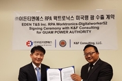 기업 디지털화 IT 솔루션 전문 기업 이든티앤에스는 25일 괌 전력청 대회의실에서 괌 소재 컨설팅 기업 K&F Consulting과 제품 판매 계약을 체결했다고 지난 2월 28일 밝혔다. 이번 계약은 이든티앤에스가 자체 개발한 RPA 솔루션 ‘웍트로닉스’를 K&F Consulting이 프로젝트 수행 계약을 맺은 괌 전력청에 납품하기 위해 체결되었으며, 최종 고객사인 괌 전력청의 CFO 존 킴은 이번 계약 체결 당시 입회해 계약 내용 등을 확인했다. 업무와 전자공학의 합성어인 웍트로닉스는 이든티앤에스가 개발한 국산 RPA 솔루션으로 SW 로봇을 구현하는 ‘웍트로닉스 Client’와 SW 로봇 운영을 관리하는 관리자 포탈인 ‘웍트로닉스 Manager’로 구성됐다. 이 제품은 글로벌 회계 감사기업의 감사 업무를 위한 목적으로 개발됐다. 이든티앤에스는 웍트로닉스의 RPA SW 로봇 구축 편리성과 사용자 중심의 관리자 포탈 그리고 사용자 친화적 단순 인터페이스를 긍정적으로 평가받았다며 직관적 관리 체계 또한 괌 전력청이 궁극적으로 제품을 선정하는데 주효했다고 밝혔다. 이든티앤에스는 이번 계약을 계기로 괌 전력청 사업 뿐 아니라 괌 자치 정부 기관 및